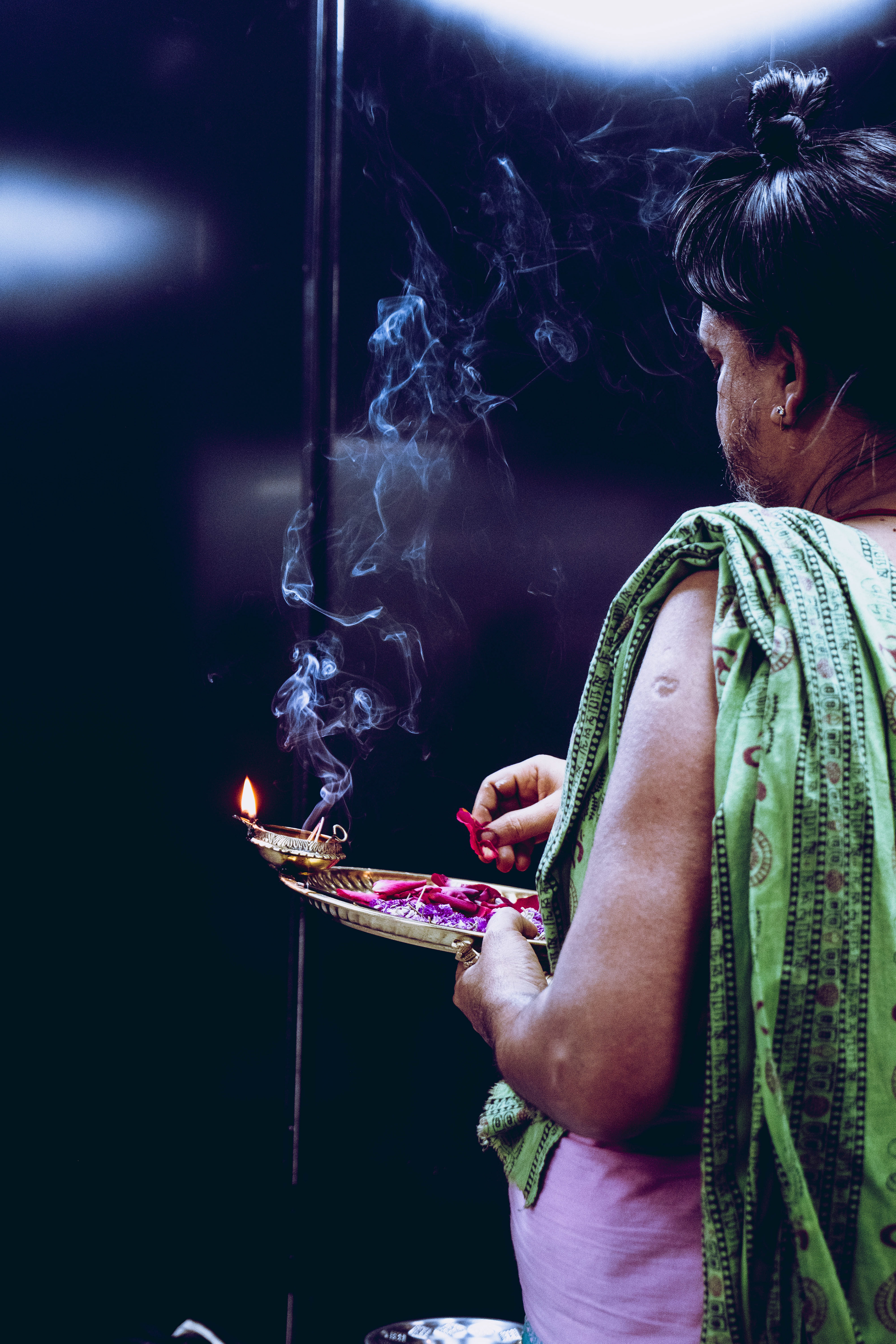 L'odeur du camphre, accompagne souvent le chant des mantras et des cloches, et immerge le temple pendant les "aarti" ( prière rituelle avec feu ).. On croit que ce parfum élève l’âme, attire la divinité et crée une atmosphère sacrée.